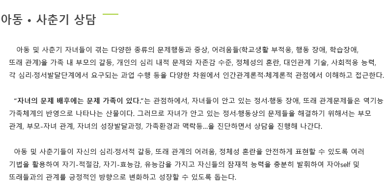 > 상담 프로그램 > 아동‧사춘기 심리상담